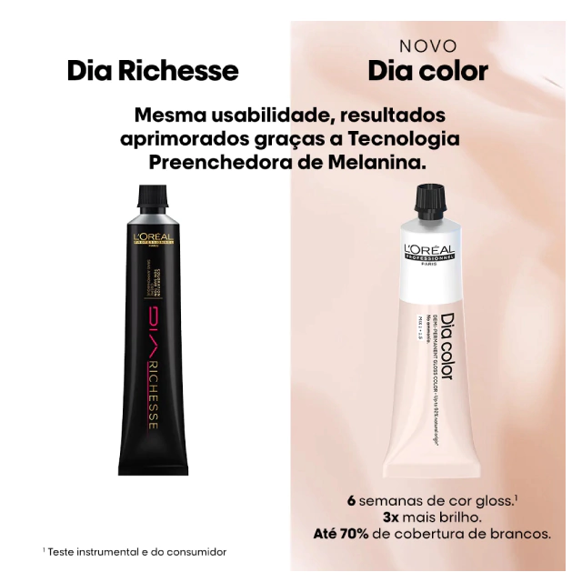 L’Oréal Professionnel Diactivateur revela cor de maneira uniforme e cobre até 70% dos brancos quando utilizado com os tonalizantes L’Oréal Professionnel Dia color ou Dialight.