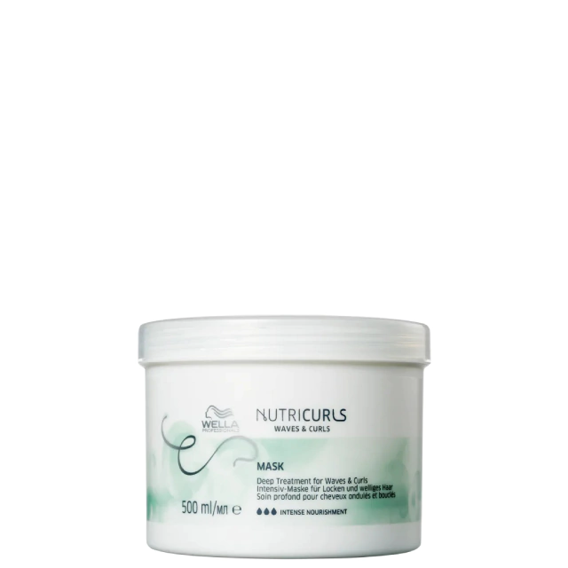 Máscara de tratamento para cabelos ondulados ou cacheados. Máscara Wella Professionals Nutricurls nutre intensamente, reduz o frizz e traz maciez para os cachos. Perfeito para ter fios maleáveis, com movimento e muito definidos. A Máscara Nutricurls, de Wella Professionals, é rica em ativos nutritivos e suavizantes, além da tecnologia Nourish-in, que garante o nível de nutrição perfeita para os fios, combate os fios rebeldes e deixa as curvas marcadas.